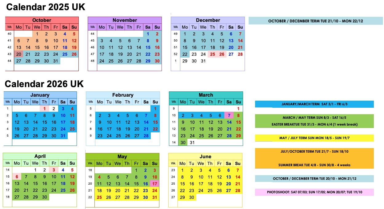Current term October/December (Tuesday 21st October - Monday 22nd December)